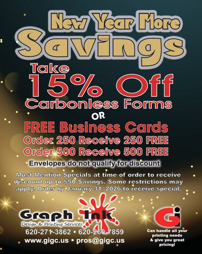 Specials for JANUARY if you have any questions give us a call at 620-271-3862 or 620-260-7859.